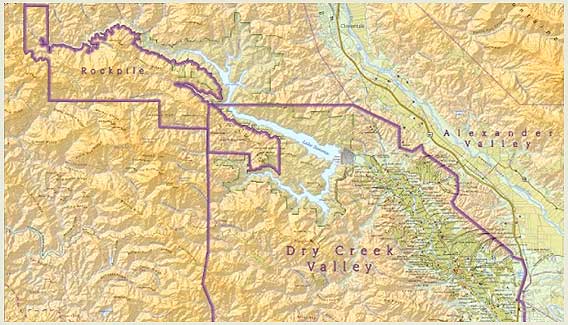 While Rockpile is one of the newest in California, receiving AVA status April 29th, 2002, the area has been referred to as Rockpile since the 1850s. Located in Northern Sonoma County, at the northwest corner of Dry Creek Valley, the Rockpile AVA encompasses nearly 15,000 acres, of which less than 160 are planted to vineyard. This makes Rockpile one of the smallest AVAs in the United States in terms of acreage planted. Approximately 2,500 of the acres of the Rockpile AVA overlap the Dry Creek Valley viticultural area to the Southeast. Vineyards range in elevation from 800' to nearly 2100'.